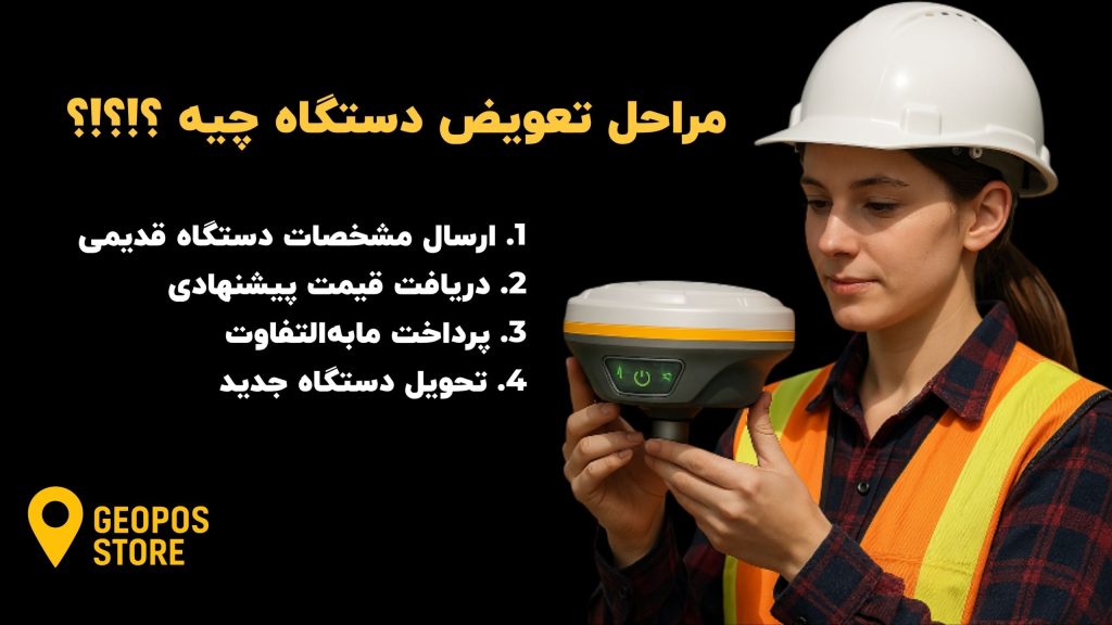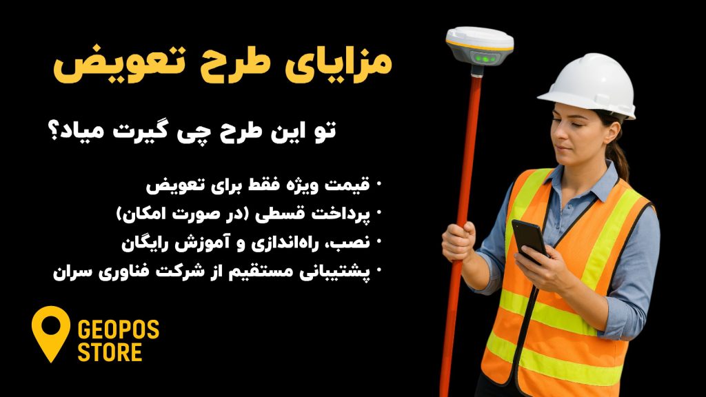 ما تو ژئوپوز یه طرح تعویض راه انداختیم که توش می‌تونی خیلی راحت دستگاه قدیمیتو بدی، یه جی پی اس نو یا مولتی‌فرکانسه دست دوم سالم و تست‌شده برداری.