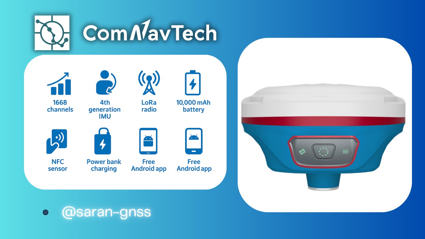 -جی پی اس COMNAV S6 PLUS -رادیو LORA  15 KM ، -IMU برای برداشت با ژالن کج، -انتخابی حرفه‌ای برای نقشه‌برداری RTK دقیق و سریع -NFC
